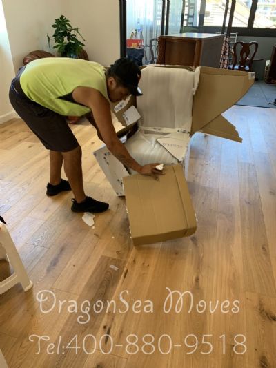 海龙国际搬家有限公司对我此次从苏州搬运到悉尼的搬运工作十分重视和负责,先是预约搬家之前,来人到现場查看物品多少,建议搬运物品需要的集装箱尺寸,预估门到门的价格。查看住家到停放车辆的距离,预定短驳工具,准备工作做得十分到位。到今天上门包装,工作人员不辞辛苦,一早就来到工作现场,包装家具物品非常小心,合理归类物品,尽量减少空间,对此我非常感谢,相信整个运输过程一定会非常顺利,再次感谢工作人员的努力付出。