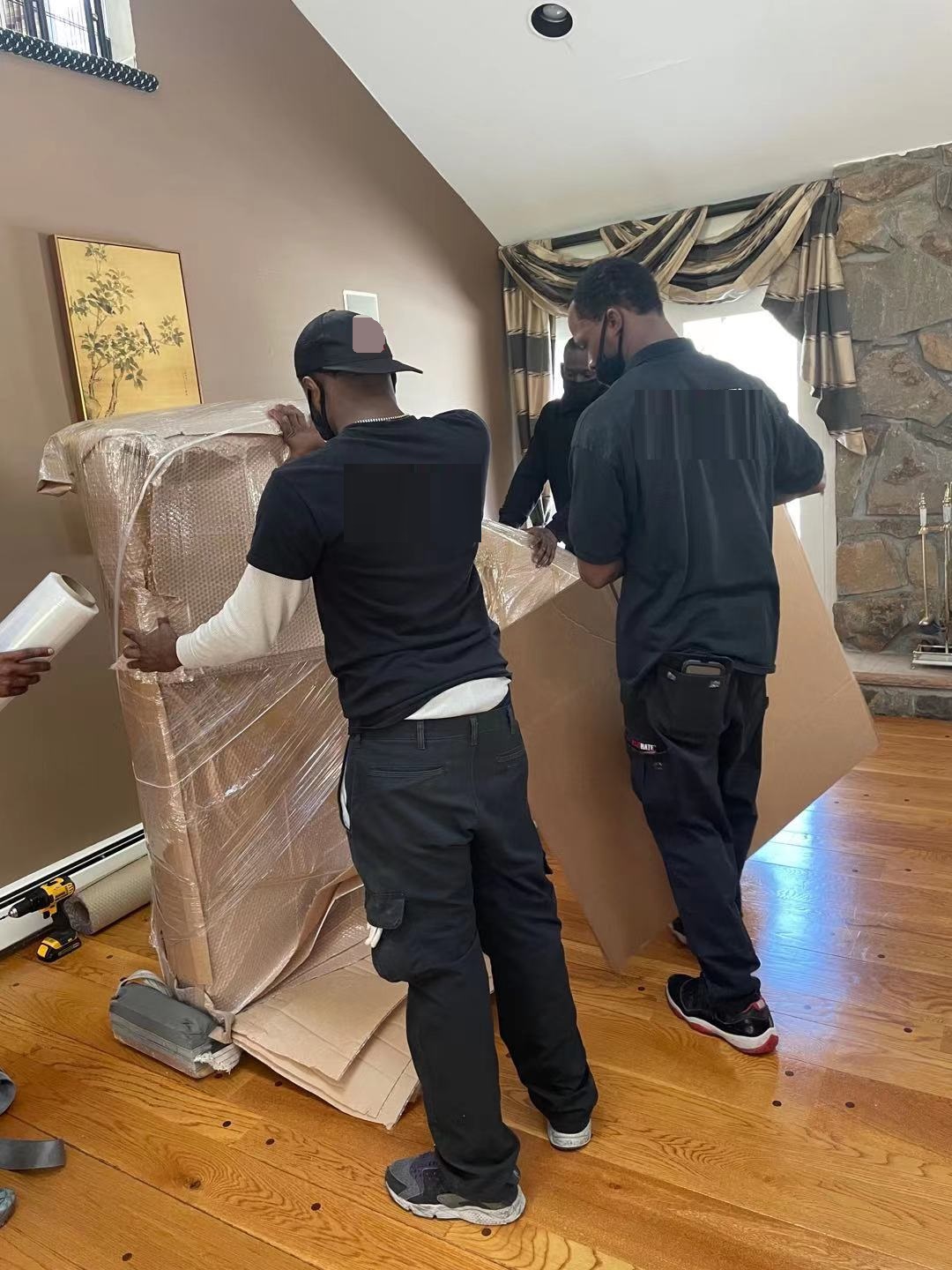 我们两层楼的东西,几人工人从早上九点打包到下午五点多六点,全部包完。虽然东西多,师傅们也都很用心,家具包装得和艺术品一样,太不容易了,还得是专业的工人才能这样,真是又细心又专业。第一天打包完,第二天又重新到我家,把昨天打包的东西全部装柜带走,柜子装好封好封条,柜子里面就只有我们家的东西,太让人放心了。